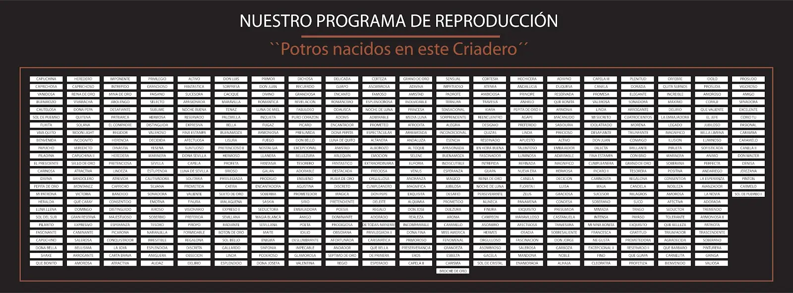 Para lograr producir excelentes ejemplares, contamos con un selecto número de caballos machos y extraordinarias yeguas que producen maravillosas crías.